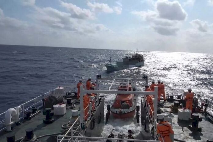 【記者黃敬琳/高雄報導】海巡署艦隊分署於17日晚間接獲通報,一艘琉球籍鮪延繩釣漁船「富○」號於東港東南方528浬海域作業時,船上1名印尼籍漁工突發昏迷,經醫師遠距評估有立即就醫需求,船方請求海巡協助。海巡署立即調派直屬船隊「巡護八號」船前往應處,為爭取黃金救援時間,巡護八號即採與「富」船對開方式航行,雙方同步縮短距離,以加速會合時程。